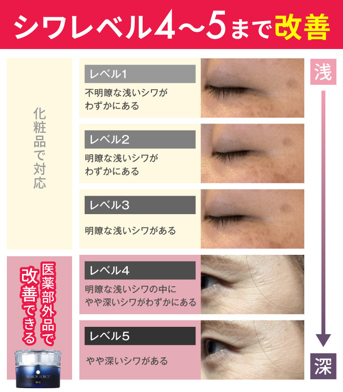 くっきり刻まれたシワまで改善